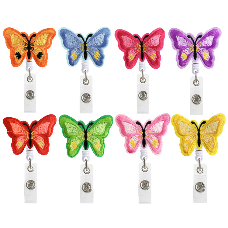 アマゾンの純色のカラフルなフェルトの刺繍の蝶の伸縮しやすいボタンの布は引っ張りやすい証明書のボタンを貼ります。