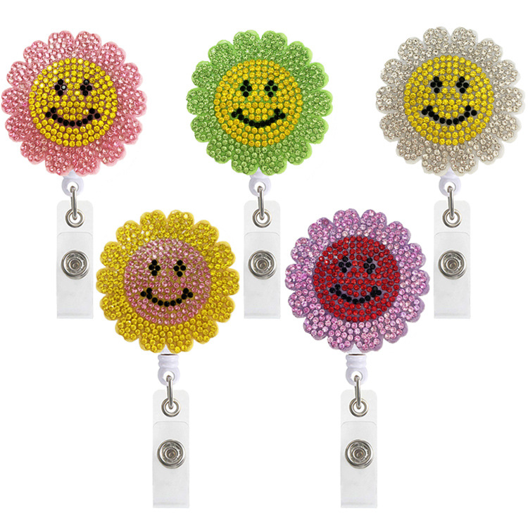 アマゾンカラードリルヒマワリフェルト伸縮しやすいボタン笑顔太陽花回転しやすいバッジクリップ