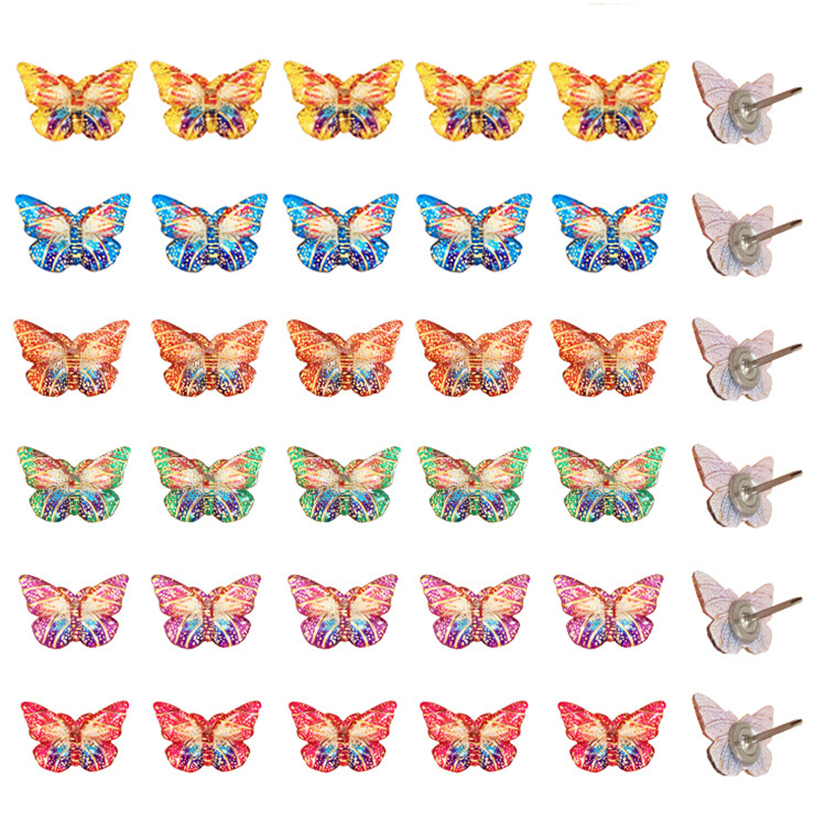 アマゾンスポット30匹のアクリル蝶画鋲工字釘壁面装飾コルク固定金属画鋲