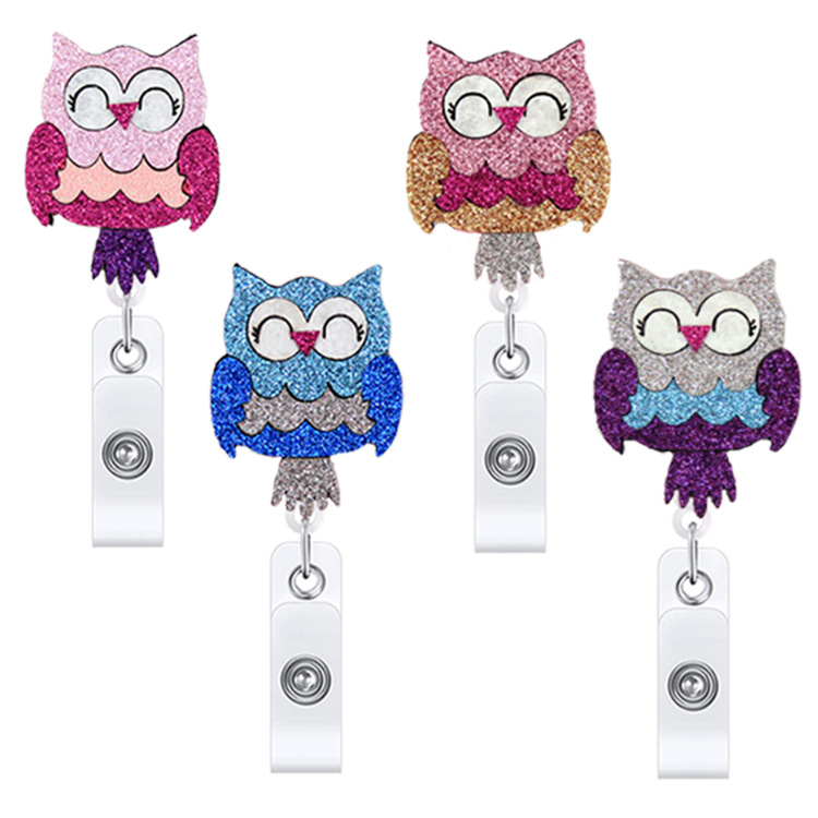 アマゾンの金葱粉閃粉フクロウフェルト伸縮しやすいボタン布貼り付けの簡単なボタンバッジクリップ