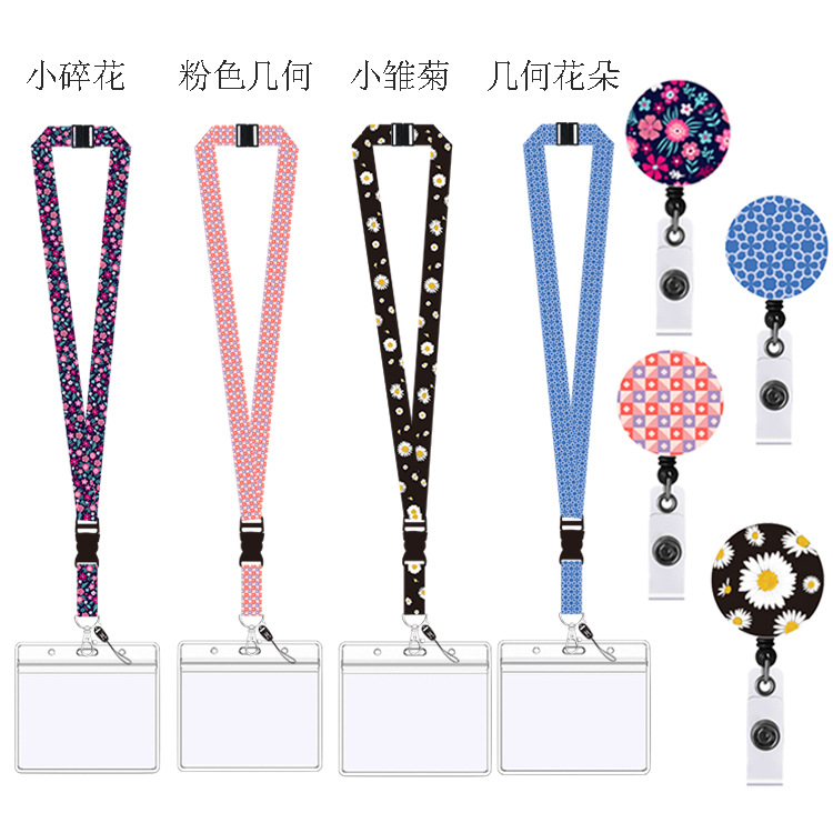 アマゾンの現物の小さな花の花のストラップの伸縮ボタンは、携帯電話のストラップpvcカードカバーを引きやすい