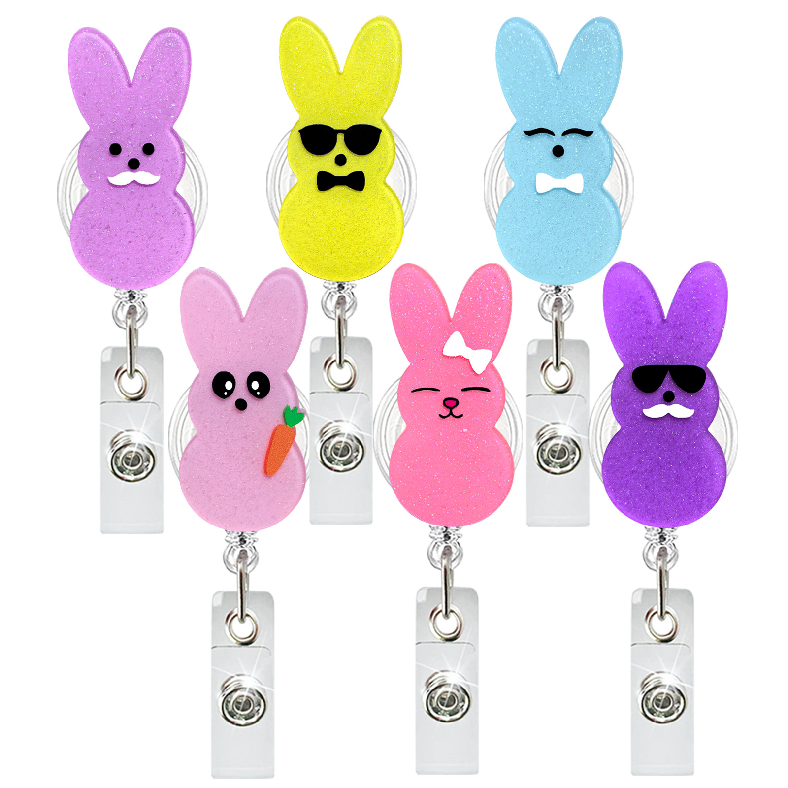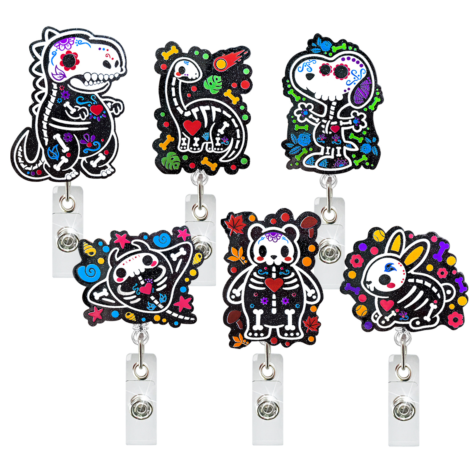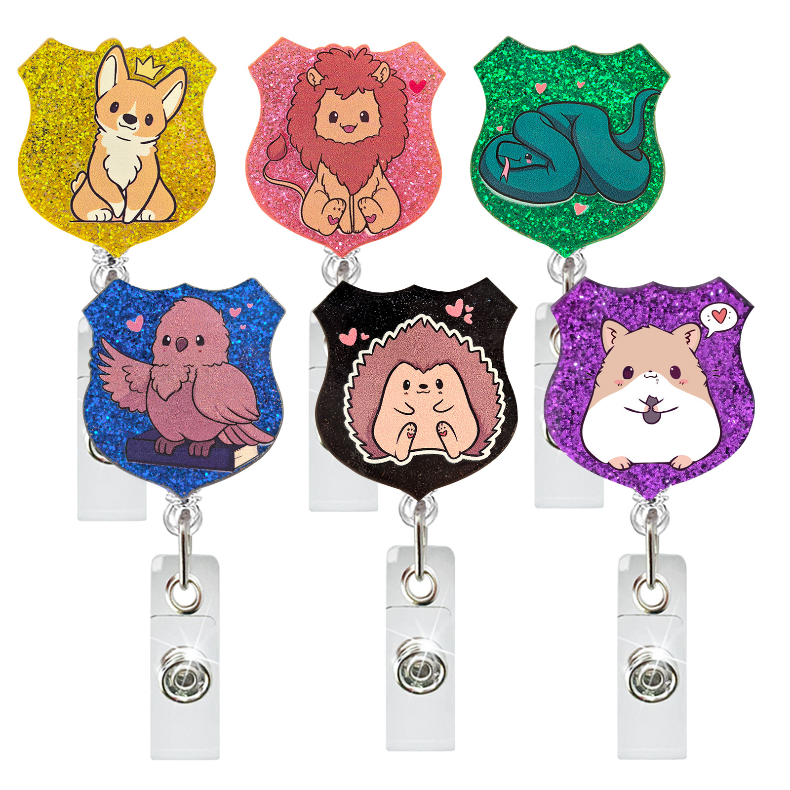 アクリルキラキラウサギ熊犬恐竜カラー回転可能プレゼント伸縮可能学生バッジリール引きやすい