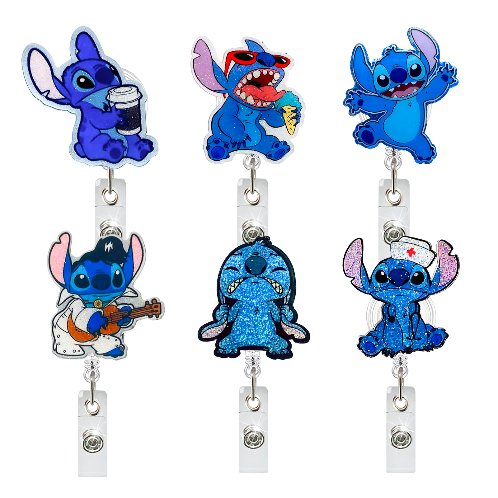 Amazon ベストセラー アクリル漫画 ステッチ イージー プル バックル 回転式 ID バックル 格納式バッジ リール イージー プル