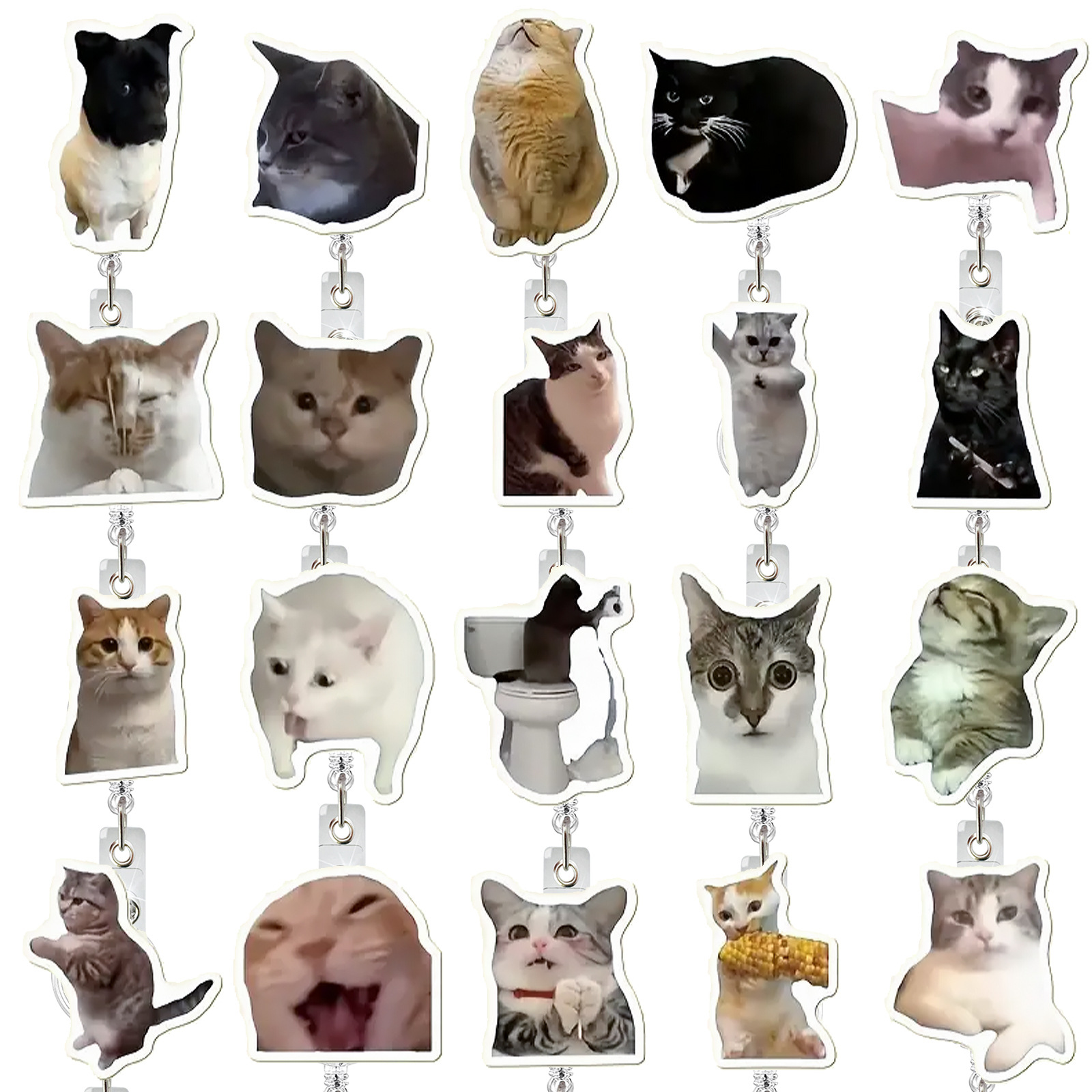 曲がった口の奇妙な子猫イージーピックアップバックル面白い砂の彫刻パロディーギフト格納式猫イージーピックアップリールバッジ