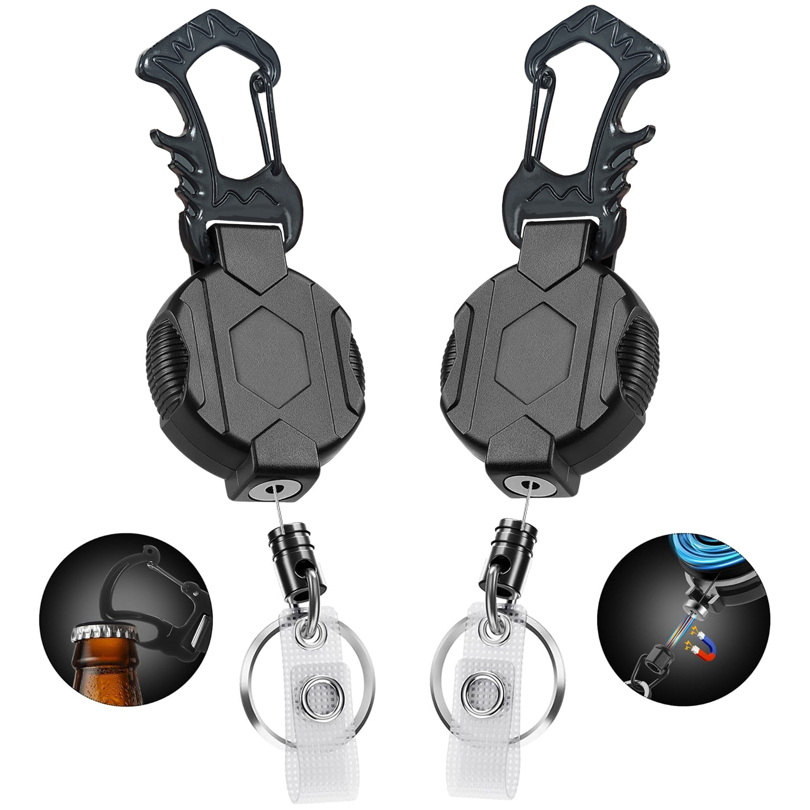 屋外で簡単に使用できるカラビナ、強力なワイヤーロープ、簡単に開く黒の伸縮式レーザー作業証明書盗難防止キーホルダー