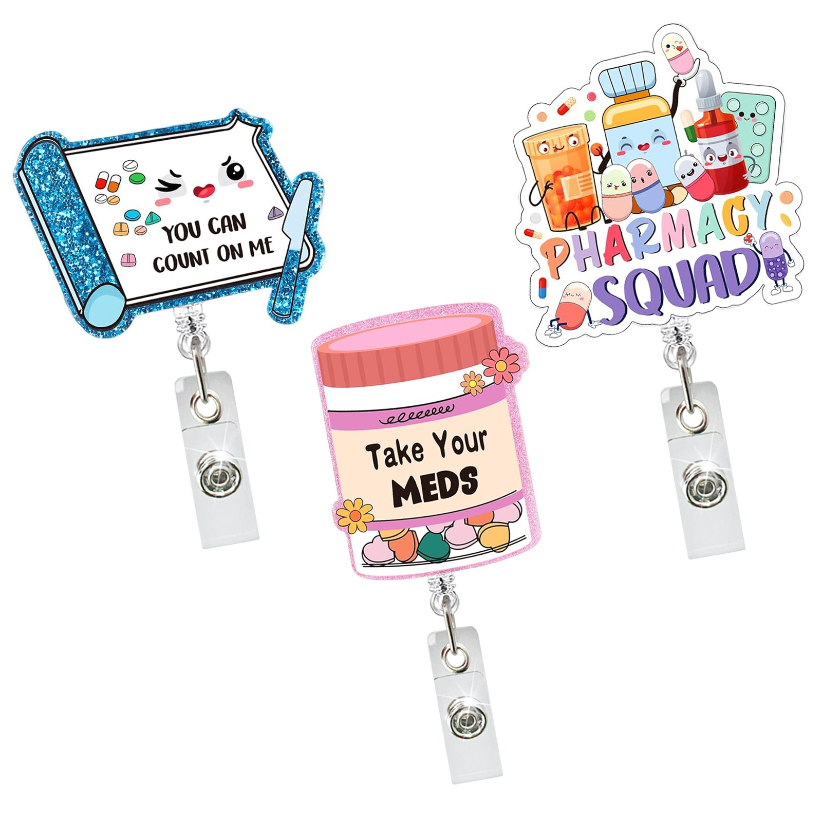アクリルレインボー薬瓶格納式バッジリール ID バックル簡単に引っ張れる医療学生ギフト簡単に引っ張れるバックル