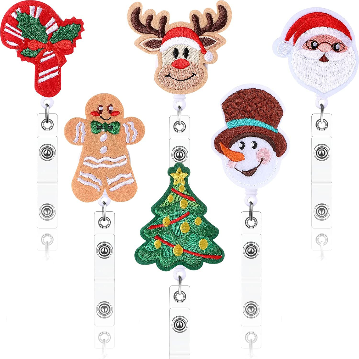 クリスマス刺繍フェルト雪だるま杖ヘラジカ伸縮可能な回転はワニのクリップ証明書のボタンを引きやすい