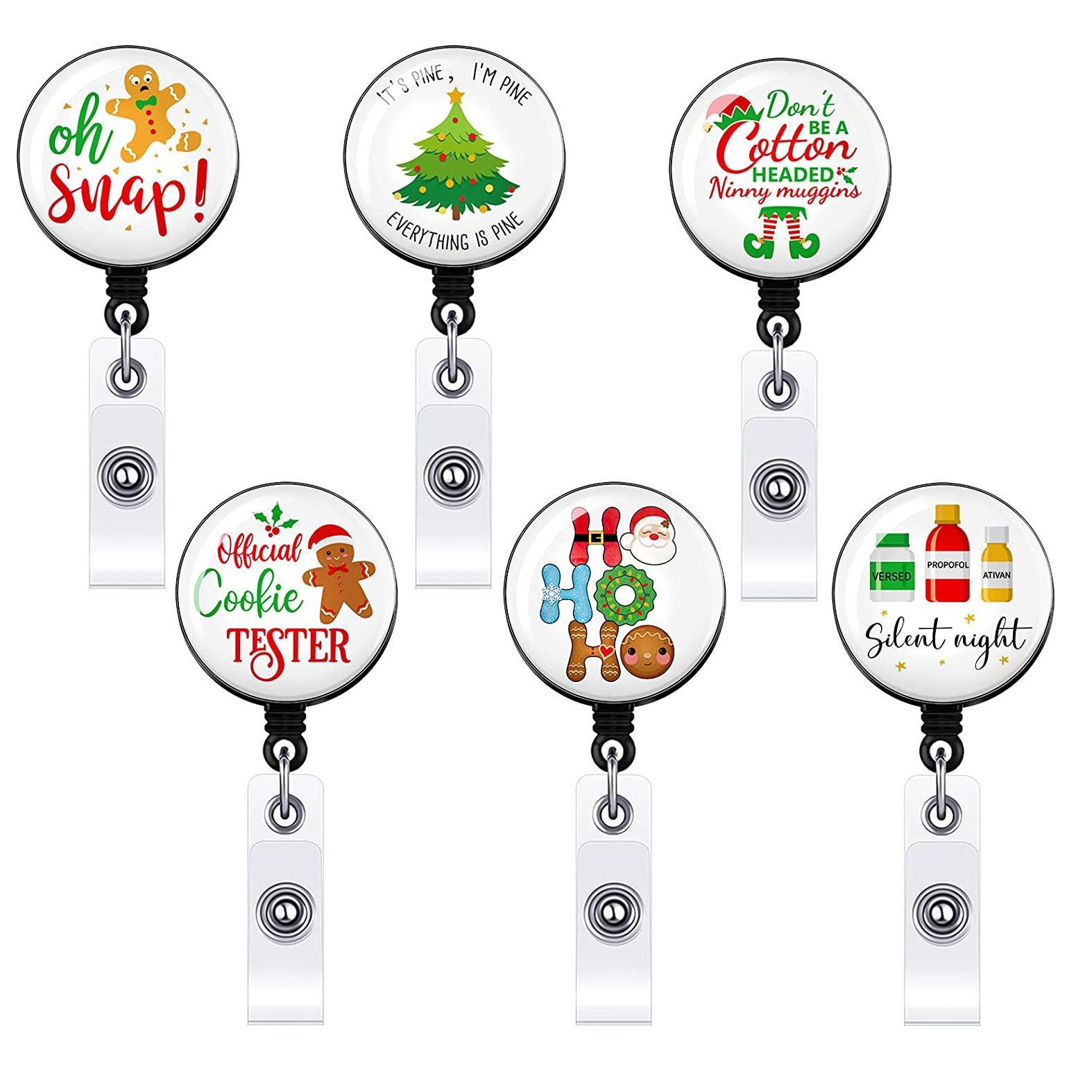 クリスマス手描きかわいいクリスマスツリージンジャーブレッドマンソックス伸縮性回転しやすいバッジリールプレゼント