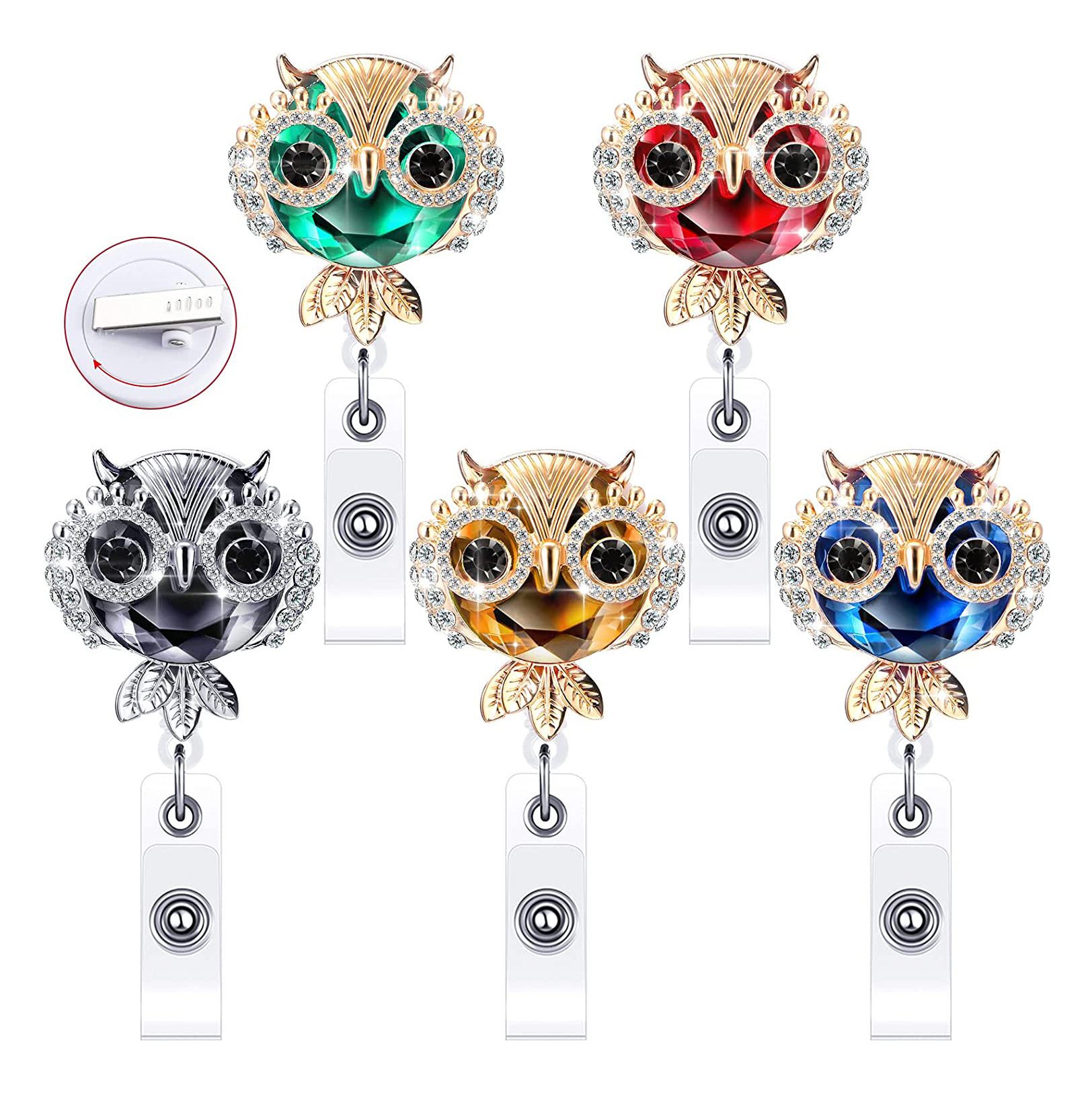 キラキラガラスのドリルフクロウの引きやすいボタンは、伸縮性のある回転合金看護師バッジリールになります