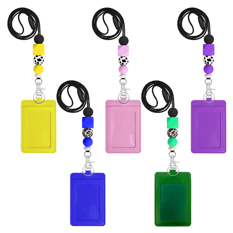 かわいいヒョウ柄のミルクの紋様のプリントのシリコンの玉の数珠は縄を掛けて簡単にpu皮のカラーの証明のカードのカバーを掛けます。