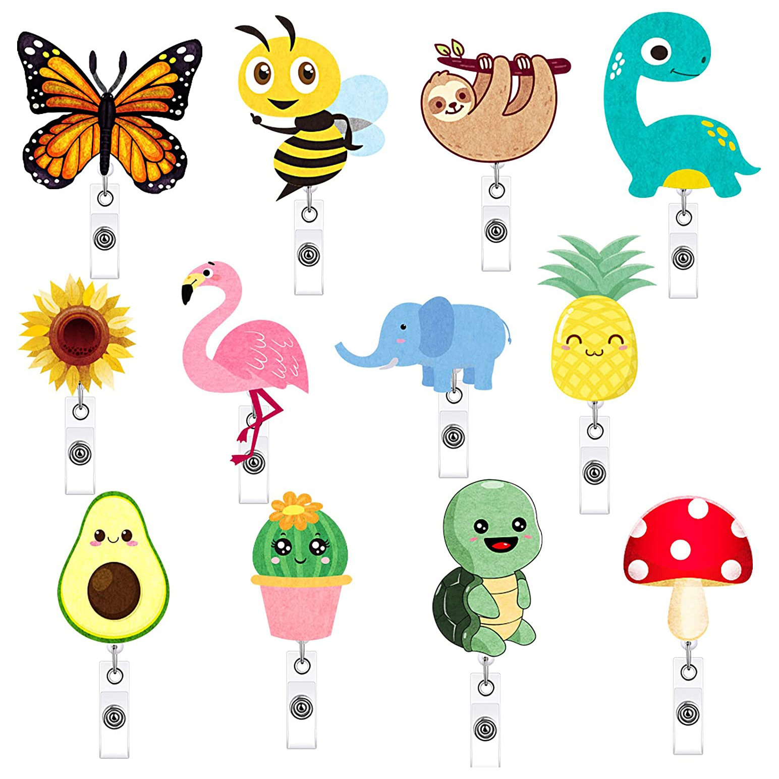 かわいい動物フェルト引きやすい蝶恐竜亀ミツバチ伸縮回転バッジリール