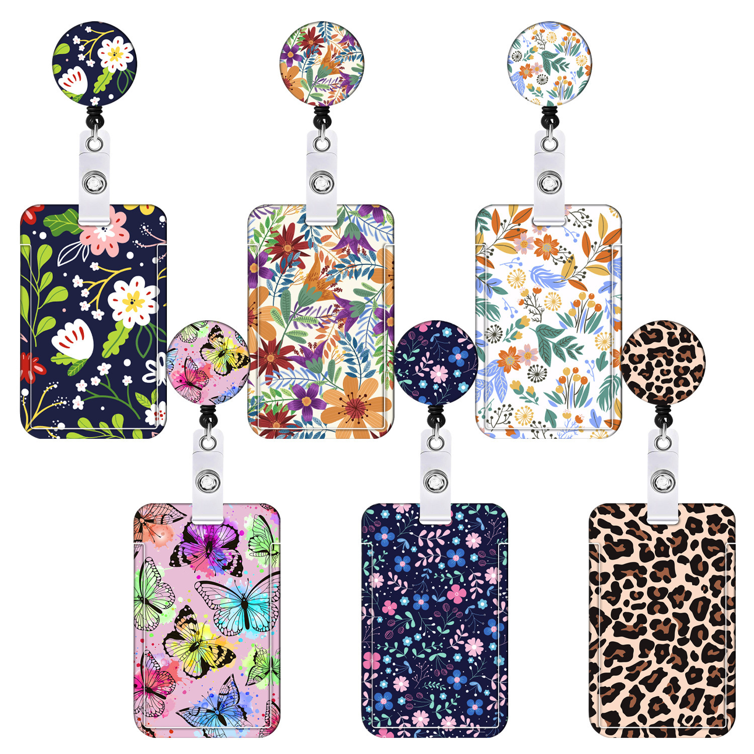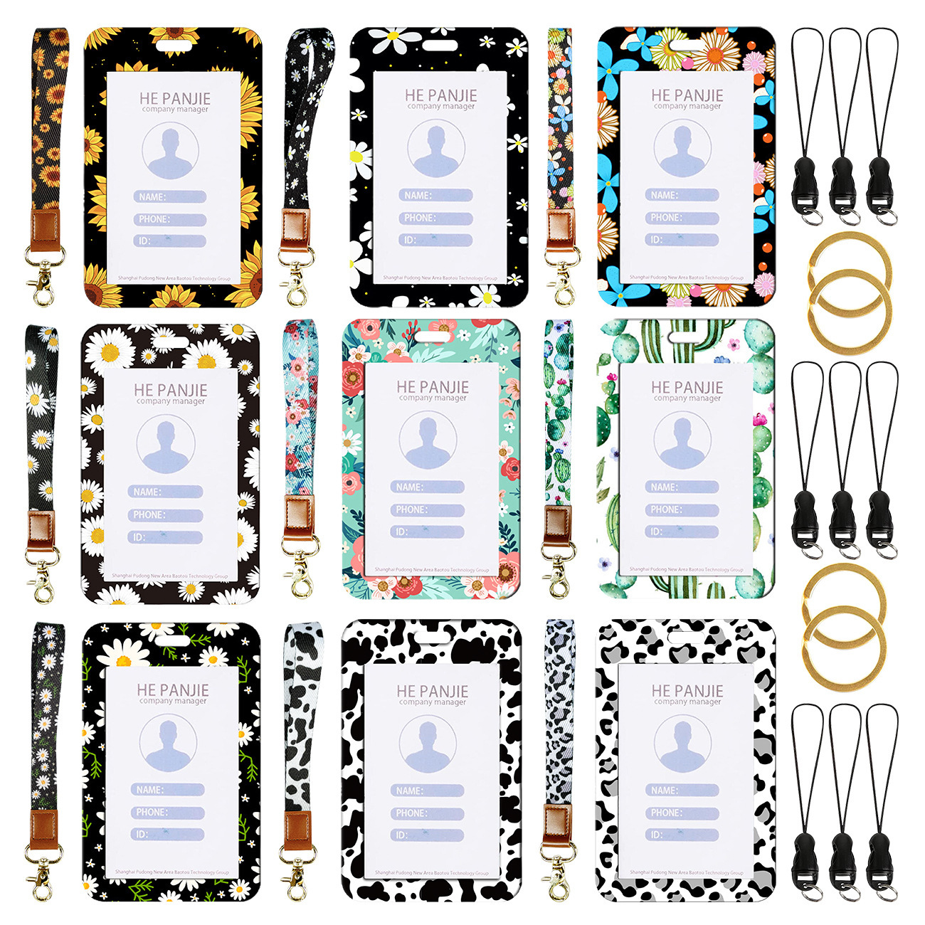 フレッシュな花卉滴糊は、カラー大理石のポリエステルのストラップを引きやすいヒョウ柄プリント証明書カードカバー