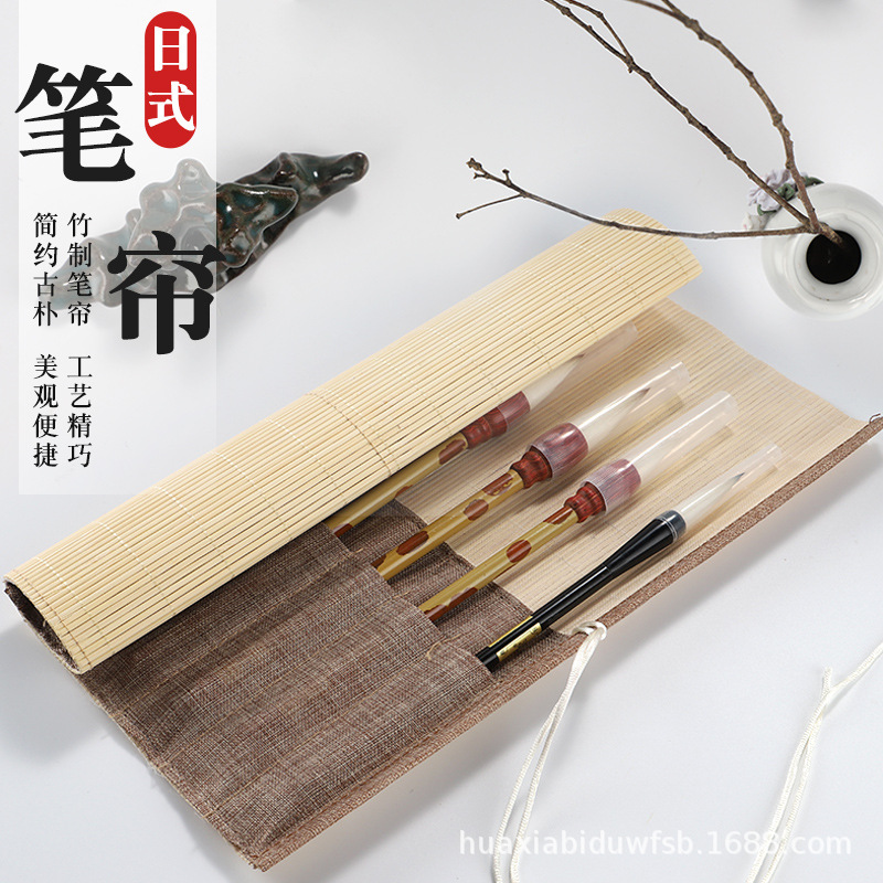 錚ペン荘日本式良品は竹の筆のカーテンの書道の毛筆のカーテンの筆の袋を大きくして袋の文房の四宝を挿し込みます。