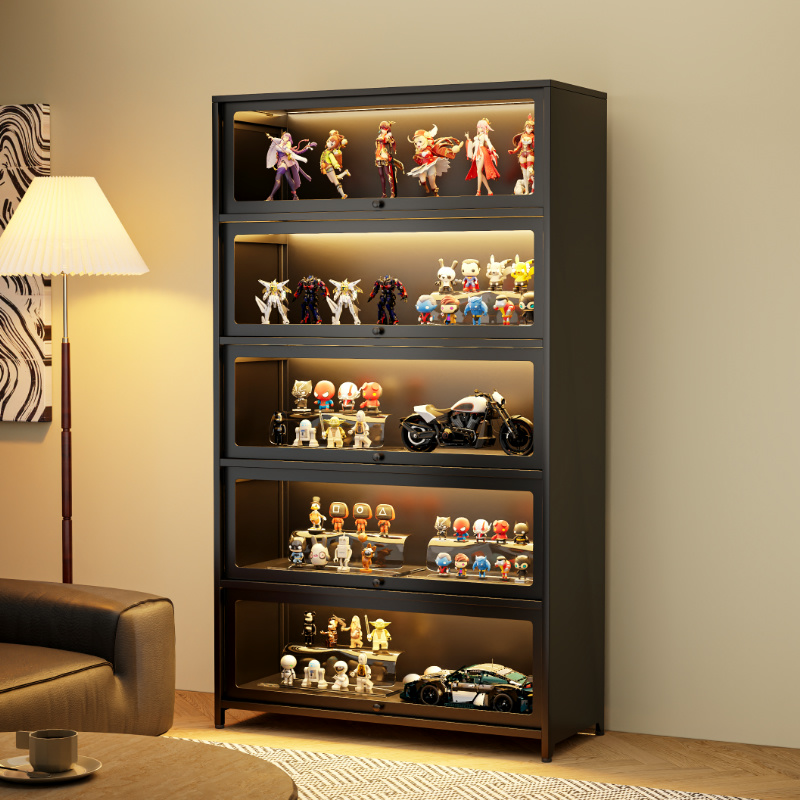 スチール本棚多層子供用本棚ホームリビングルーム床置き収納キャビネット防塵ガラスドアディスプレイキャビネット鉄キャビネット