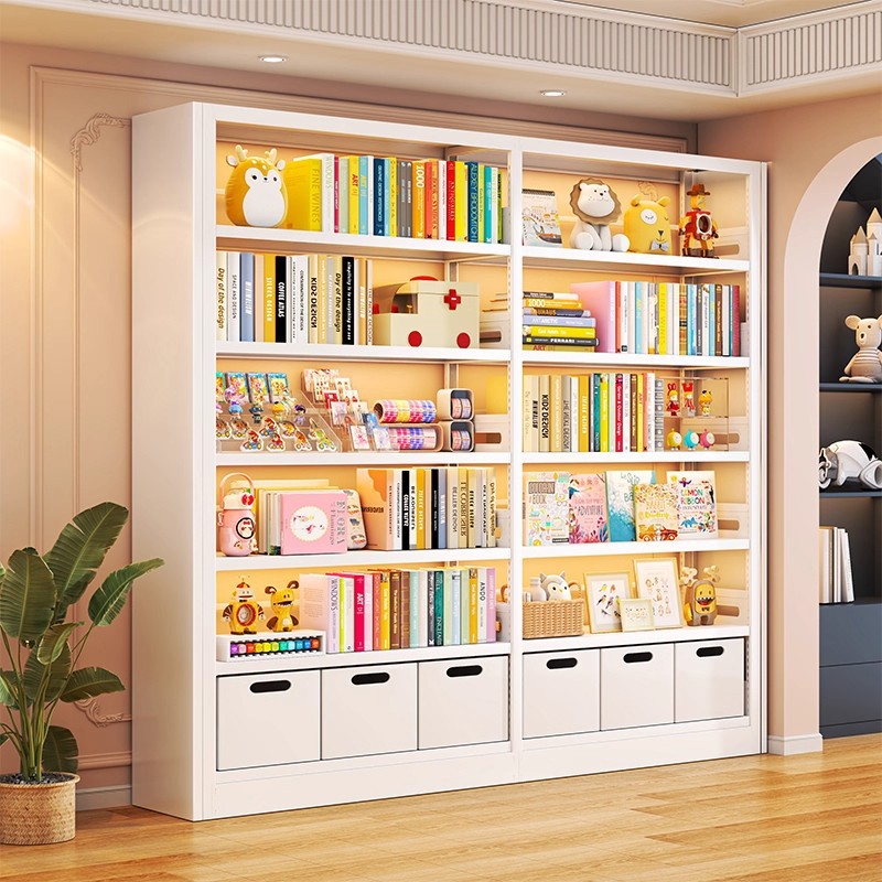 図書館スチール本棚家庭用床置き収納ラック子供用本棚リビングルーム絵本ラックシンプルな鉄製収納ラック