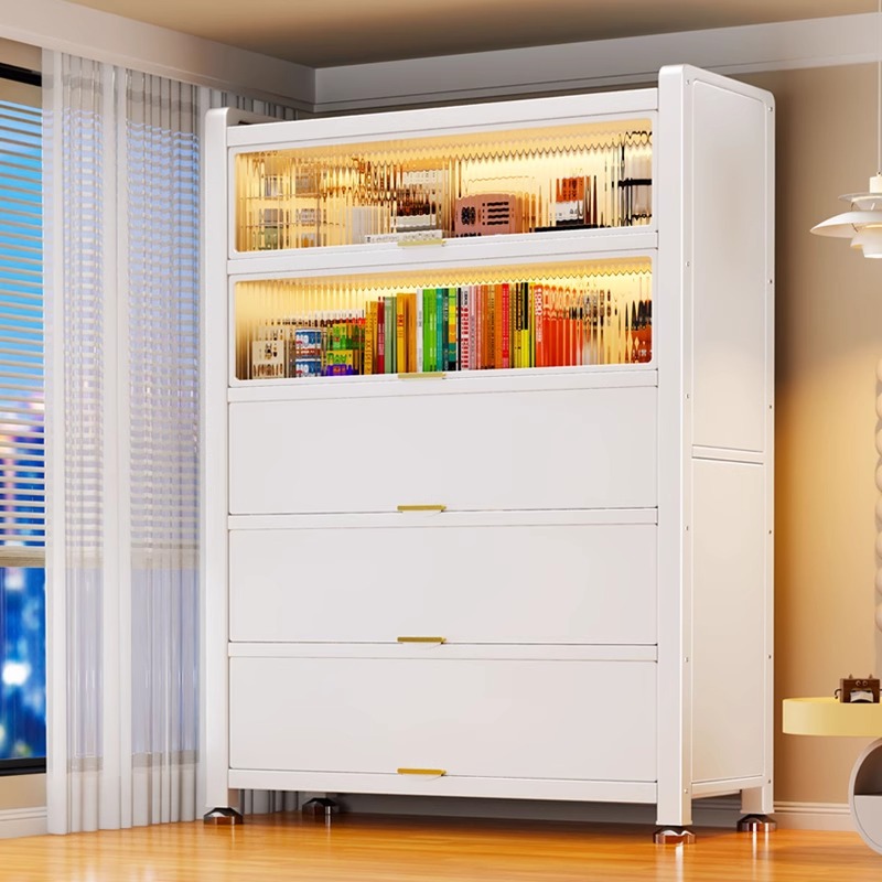 ドア付きスチール本棚、防塵子供用本棚、家庭用収納キャビネット、一体型床置き壁掛けリビングルーム収納キャビネット