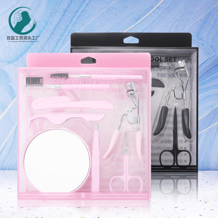メーカー直供美容道具ステンレスまつげクリップピンセット鏡眉櫛眉クリップはさみ化粧8点セット