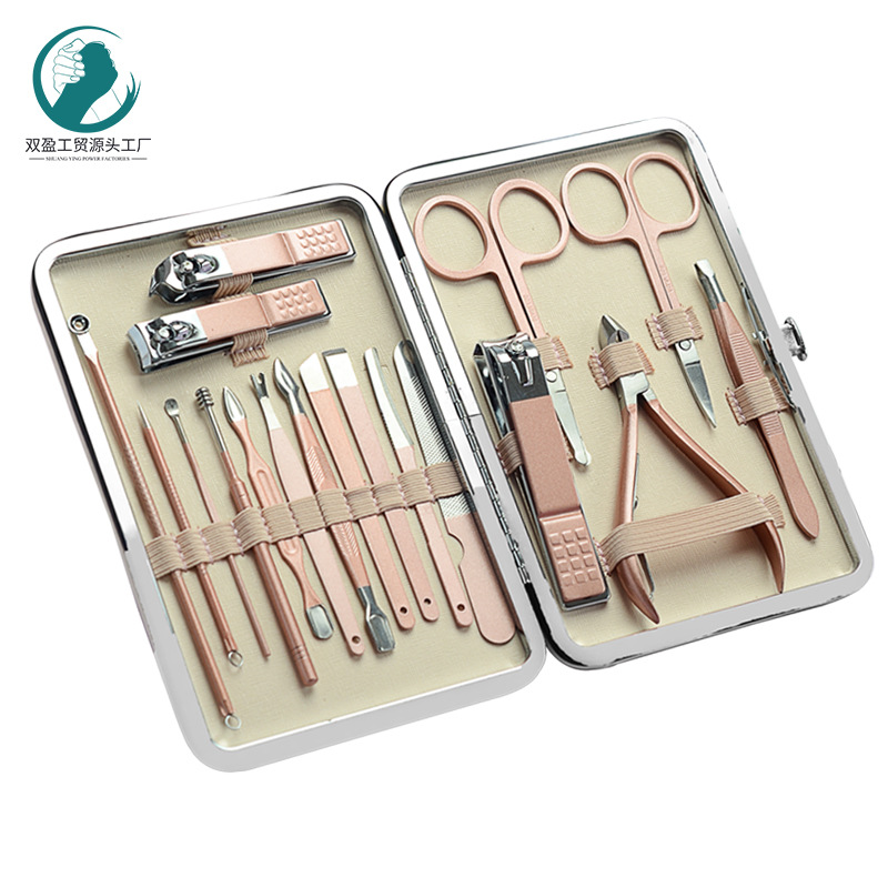 メーカー直供美化粧道具18点セットバラ金美容ネイルセット爪切りセット