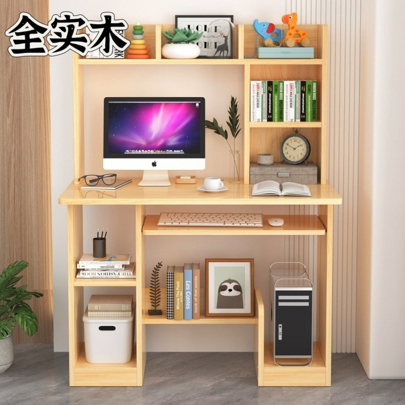 無垢材のシンプルなコンピュータデスクトップテーブルホーム本棚付き学生ライティングデスク本棚組み合わせオールインワン本棚デスク