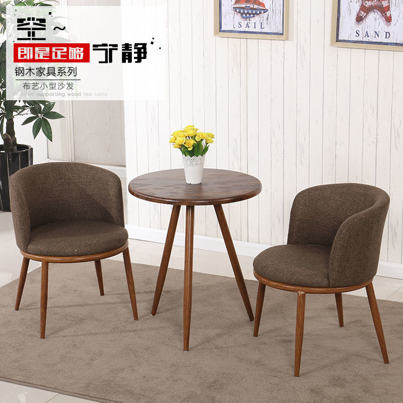 模造木製の商談用テーブルと椅子の組み合わせ、シンプルな小型住宅向け、レジャー用丸テーブル、ミルクティーショップの椅子、工場からの越境供給