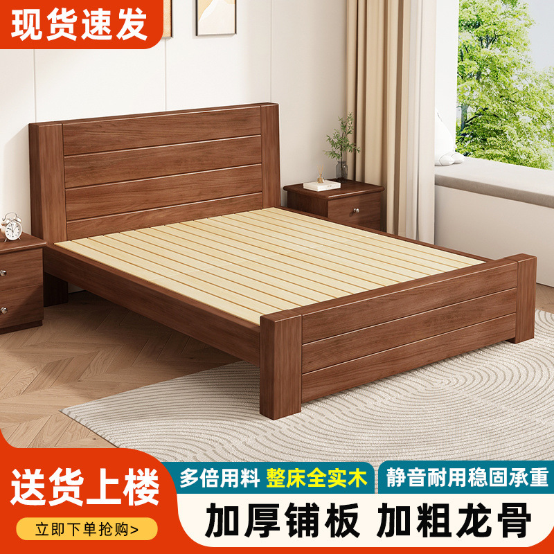 新しい中国風無垢材ベッド 1.5m ダブルベッド 1.8m 経済的なレンタルルームシングルベッド 1m シンプル