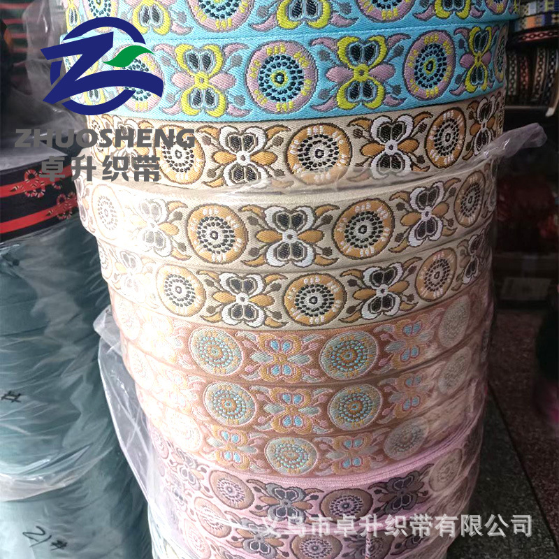 ポリエステルジャカード熱転写プリント花リボン卸売りバッグ肩裏リボン現物卸売り民族風リボンメーカー