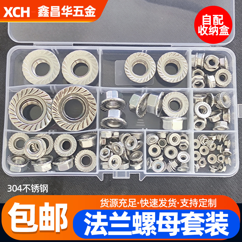 304 ステンレス鋼フランジナット六角パッド歯ネジキャップ緩み止め滑り止めナットセット M4M5M6M8M10