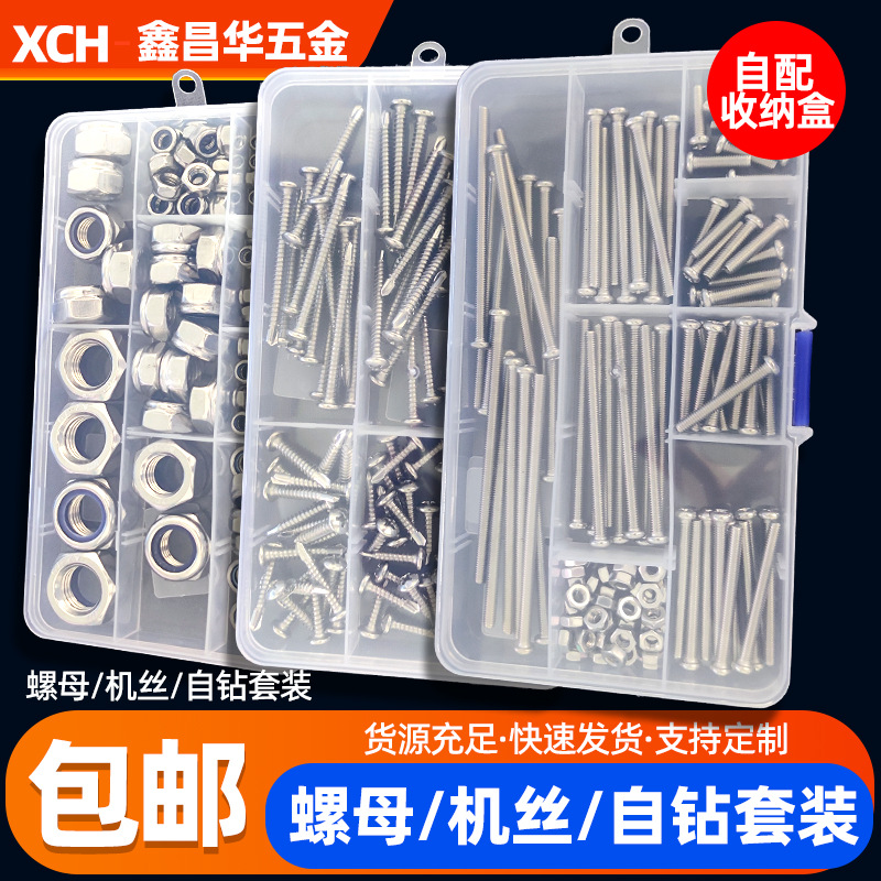 ステンレスネジナット大全十字皿頭丸頭機糸自ドリルボルトセット家庭用箱入りねじ釘