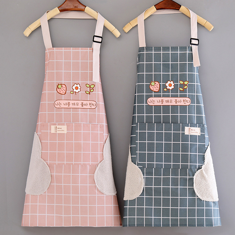 新型防水エプロンファッション田園風は家庭の台所で働く男女の仕事の汚れ防止エプロンを拭くことができる