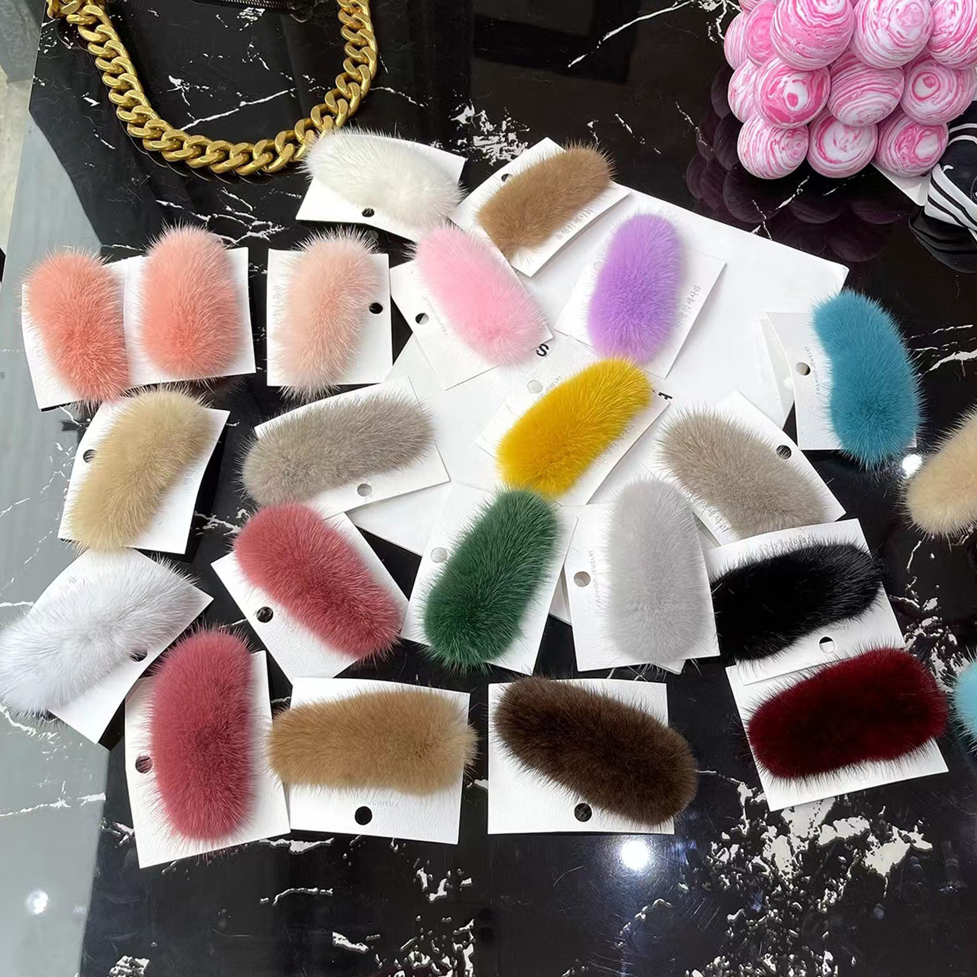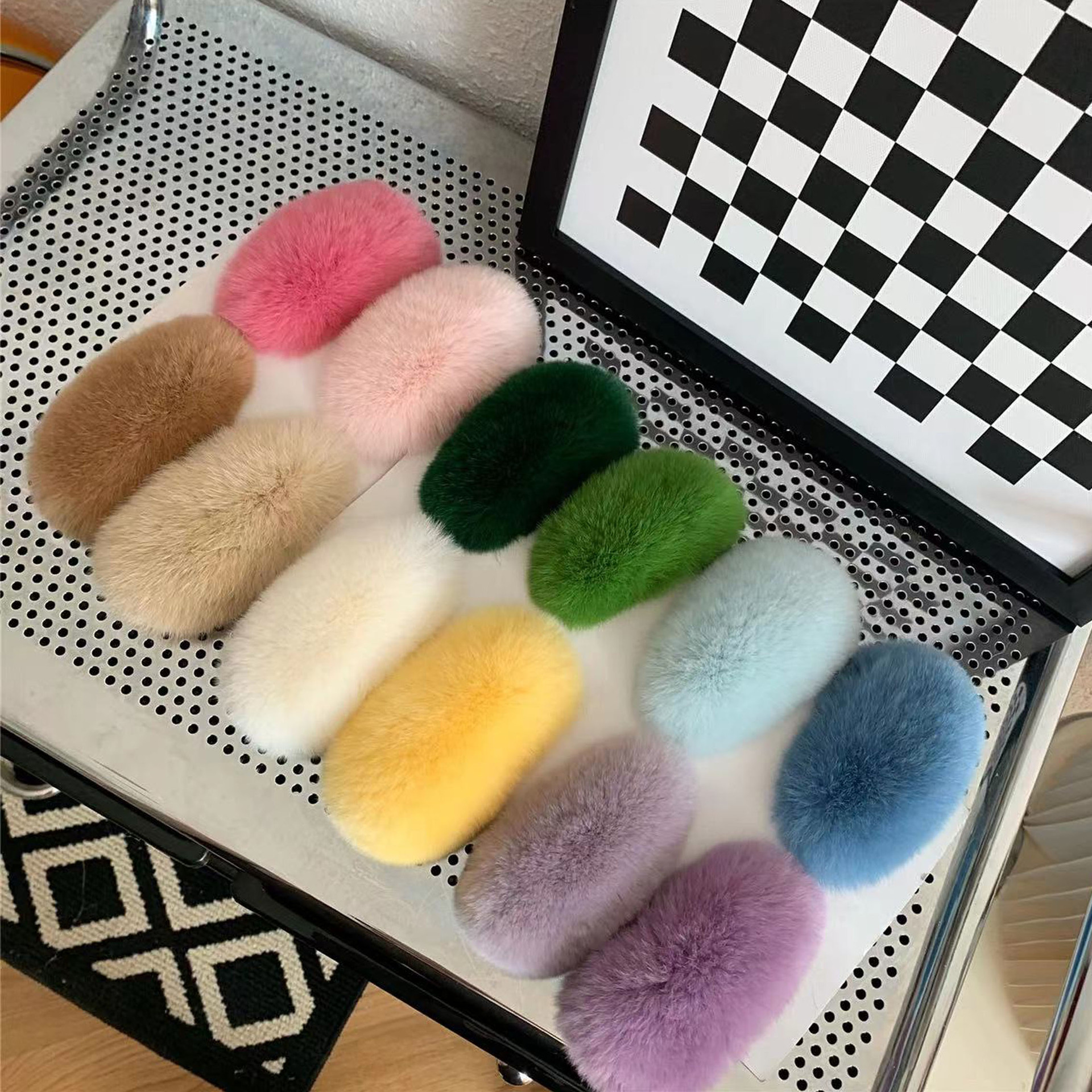 アヒル口型の甘いヘアピン、本物のウサギの毛を使ったins風ニットの大きな可愛い毛皮のヘアアクセサリー、BBヘアピン、散髪用