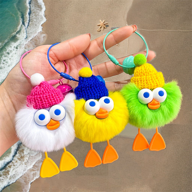 かわいいのは、ウサギの毛のアヒルの車のキーホルダーに似ています。
