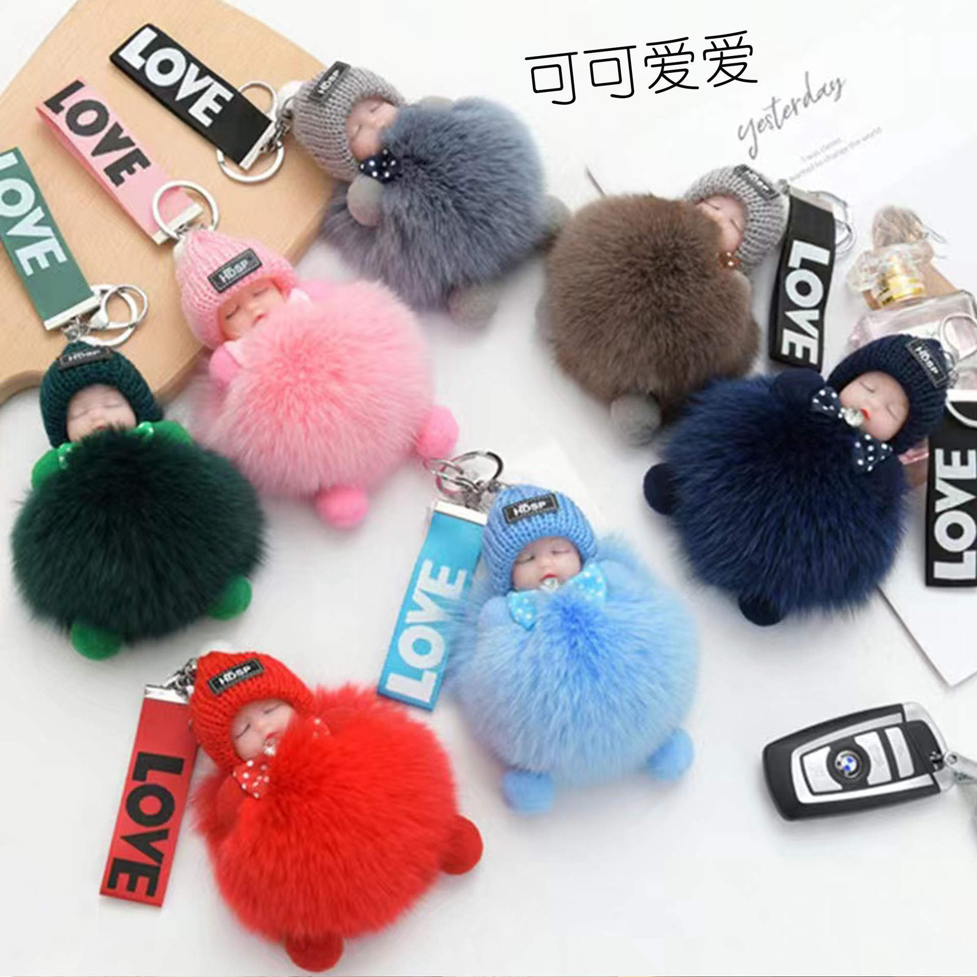 睡眠人形真狐毛玉ストラップ人形女性携帯電話バッグアクセサリー車キーホルダーぬいぐるみストラップ