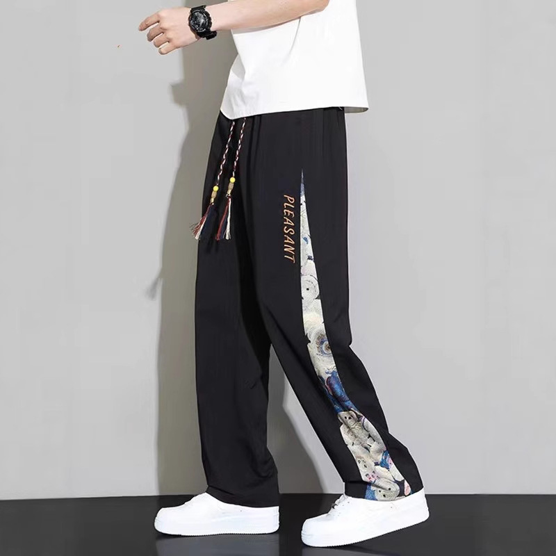 中国風刺繍パンツメンズ春秋ルーズレギンススウェットパンツトレンディなアメリカンスタイルの作業着メンズカジュアルパンツ