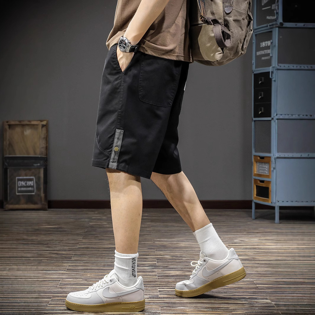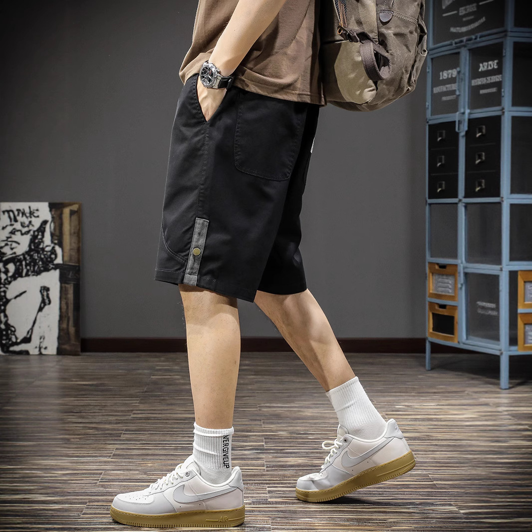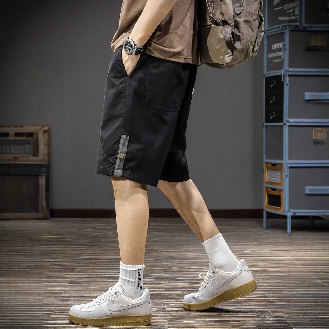 夏カジュアルルーズカーゴショーツメンズ日本レトロスプライシングルーズカジュアルクォーターパンツユーススポーツミッドパンツ