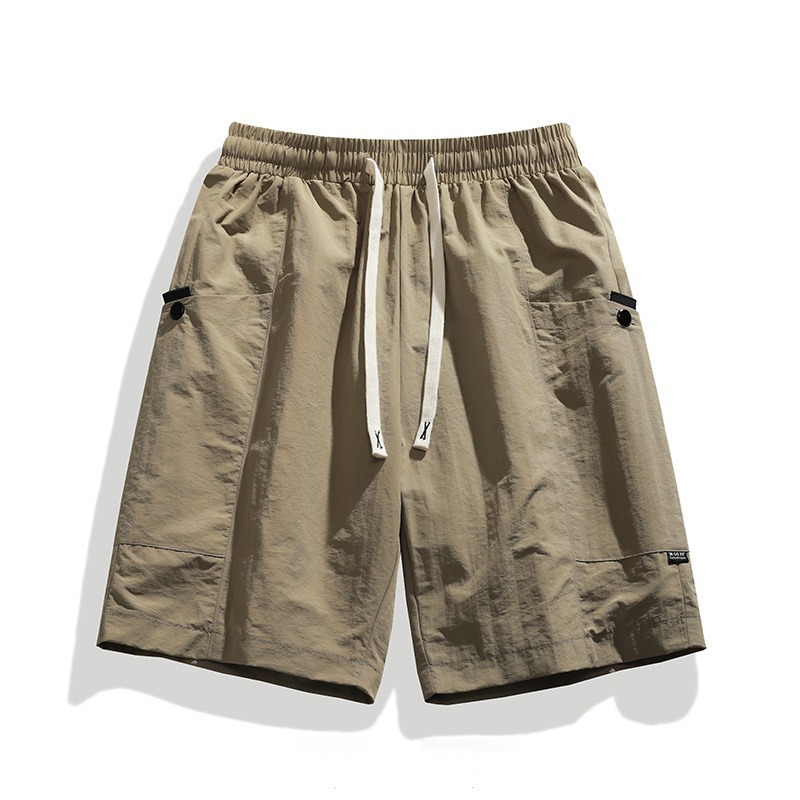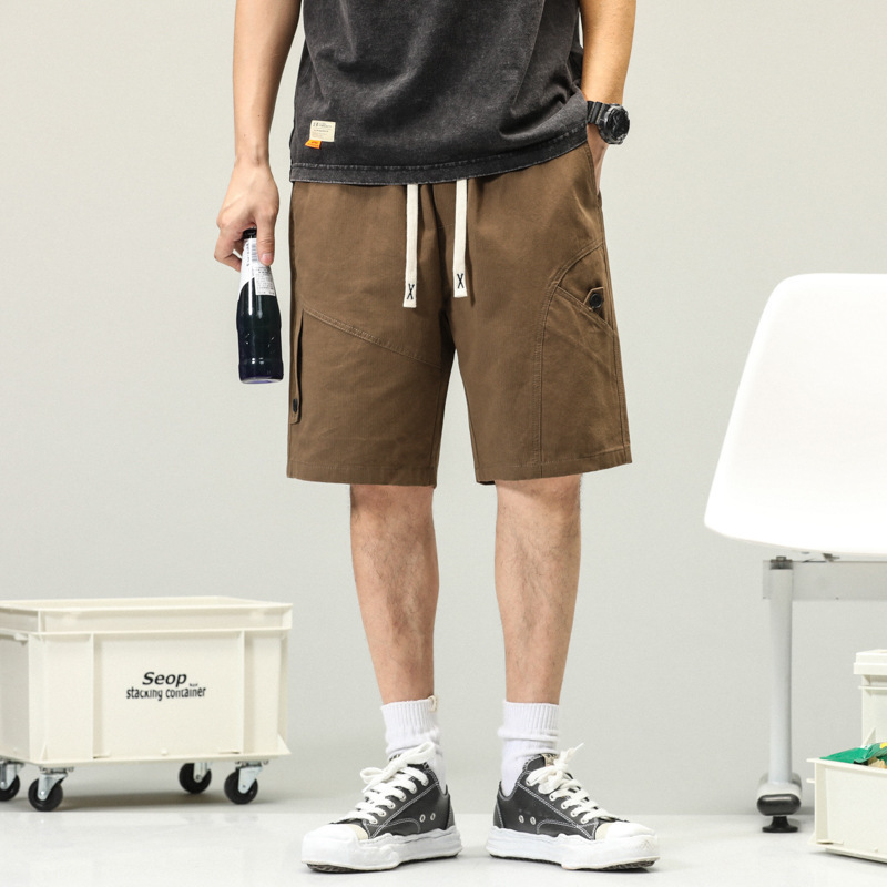 メンズ薄手の新しいルーズ日本製レトロカーゴショーツストレートレッグトレンディな多用途ルーズドローストリングスポーツ5点パンツ