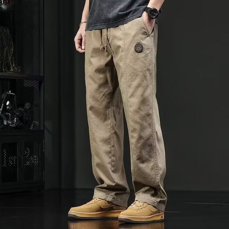 作業用パンツ、アメリカンレトロメンズカジュアルパンツ、夏用無地夏用薄手ゆったり耐摩耗性ワークパンツ