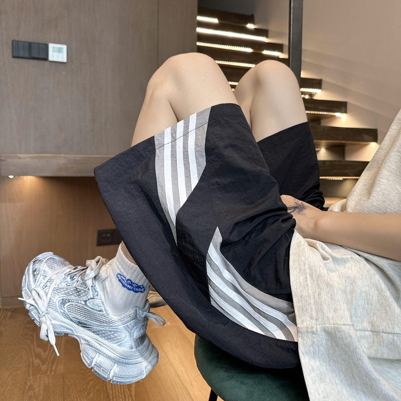 アメリカのレトロな3本のストライプの薄いタイプの速乾の半ズボンの男性の夏の新型のファッションのゆったりしている大きいサイズのカジュアルな5分のズボン