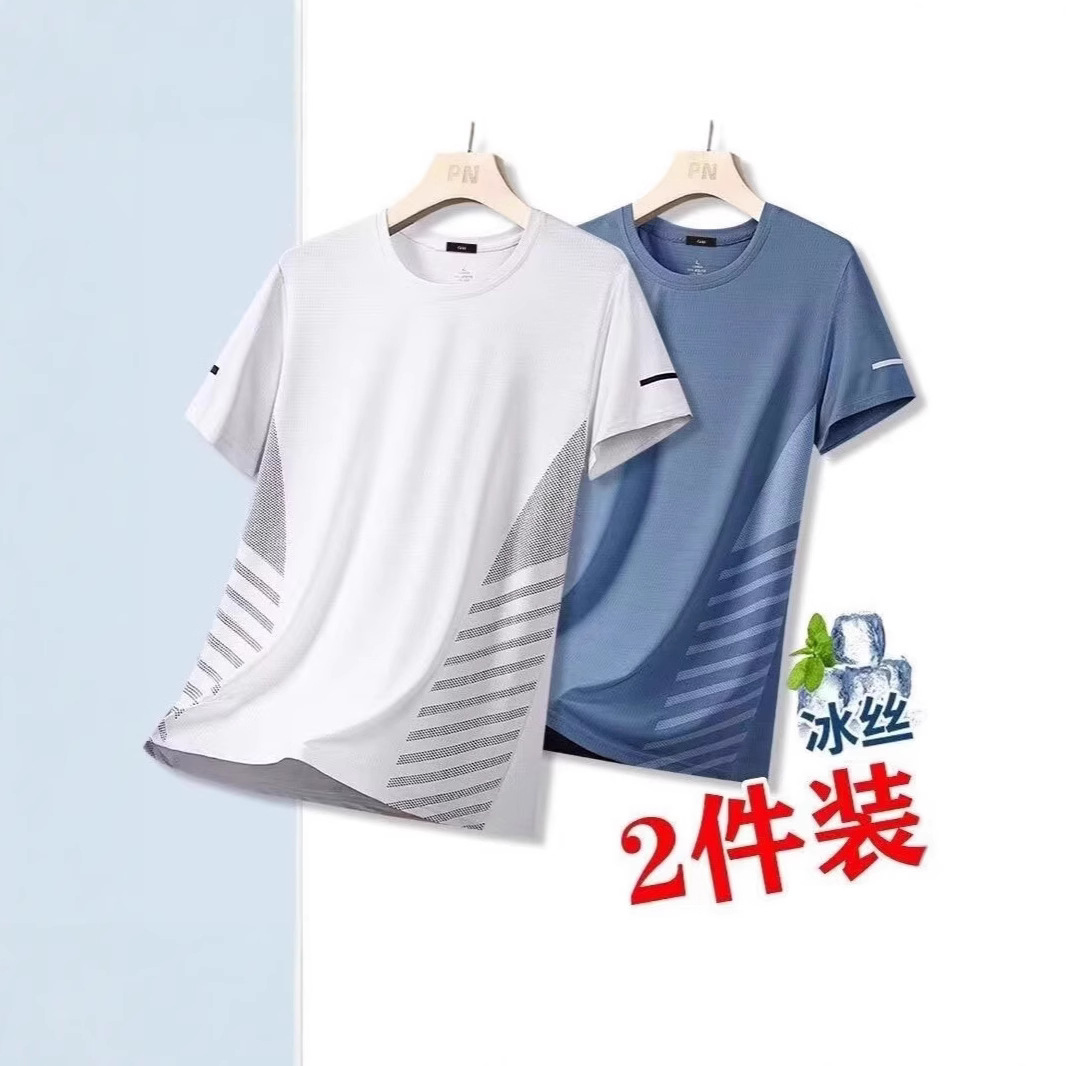 夏のアイスシルク半袖シャツメンズ夏薄手速乾メッシュスポーツフィットネス半袖トップカジュアルルーズ