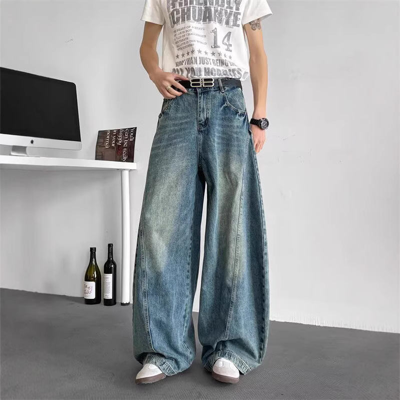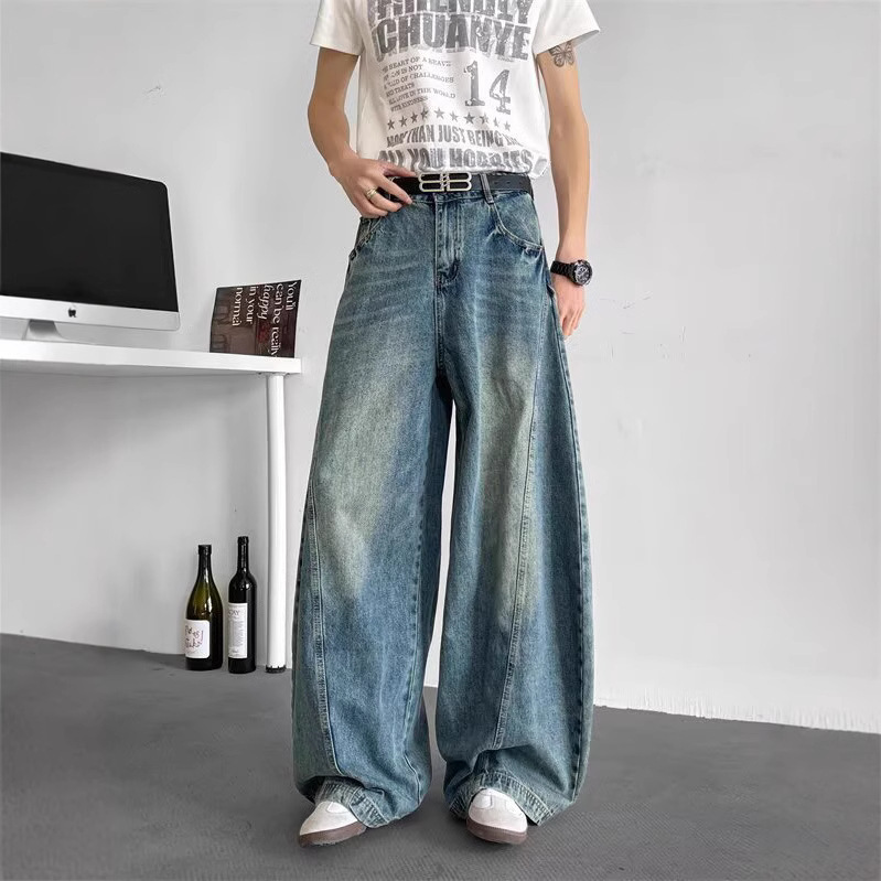 香港風潮男夏の新型2025新型ジーパンヒップホップins潮高街の流行ごろつきかっこいい青いズボン