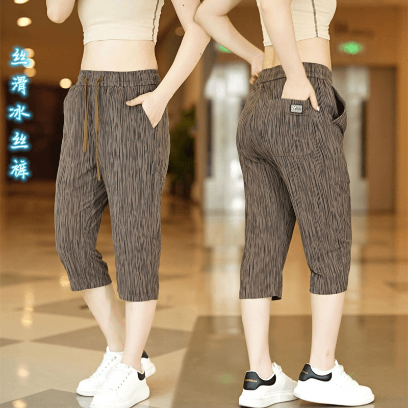 氷糸カジュアル七分ズボン男性ゆるい垂直感ストレートパンツ通気速乾パンツ星空縞中ズボン男