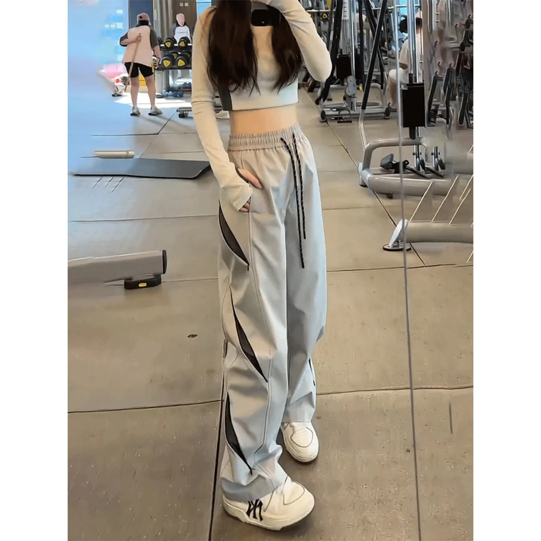 2025新型のストライプの衛のズボンの男性の春と秋のゆったりしている百合の足首のズボンの青少年の潮の札の側はズボンをつなぎ合わせます。