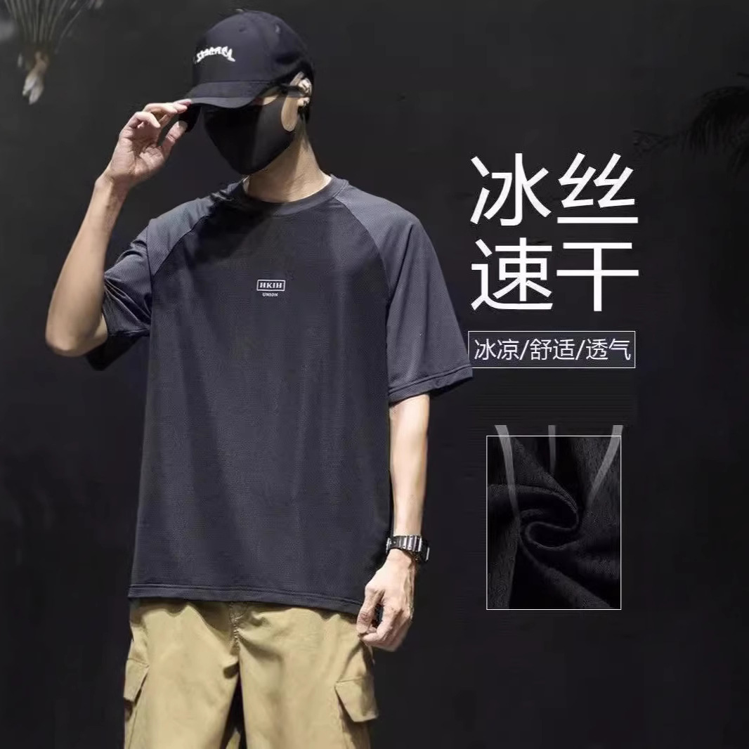 夏の新型のゆったりした薄いタイプのアイスtシャツ半袖の男性のメッシュは肩の袖の運動の速乾のカジュアルな上着をつなぎ合わせます。