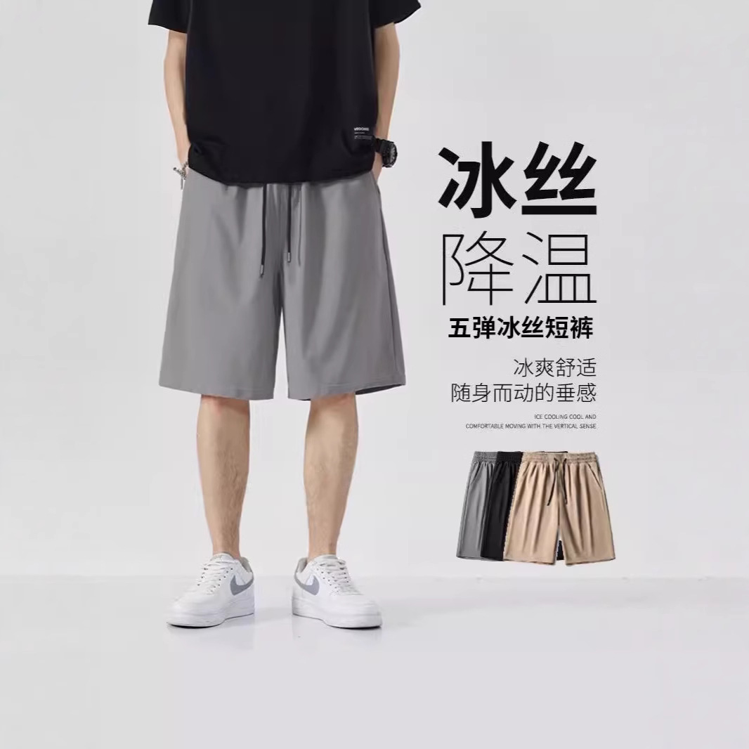 2025新型アイスパンツショットメンズ夏の薄いタイプの男性速乾五分ズボンがゆったりしていて、カジュアルなスポーツをしています。