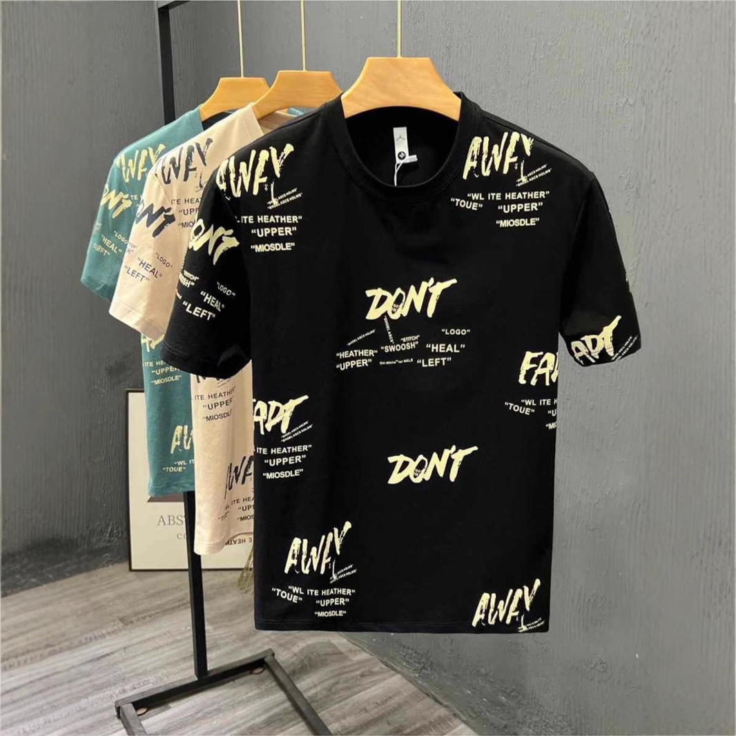 トレンドプリントtシャツメンズ2025夏新作カジュアルファッション学生半袖ゆるい丸首ボトムスティー