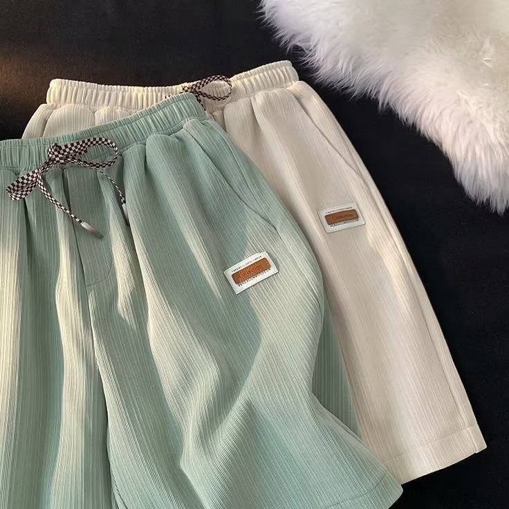 香港風夏氷糸カジュアルパンツ男性ゆるい純色五分ズボン潮涼感ズボン運動百合中ズボン