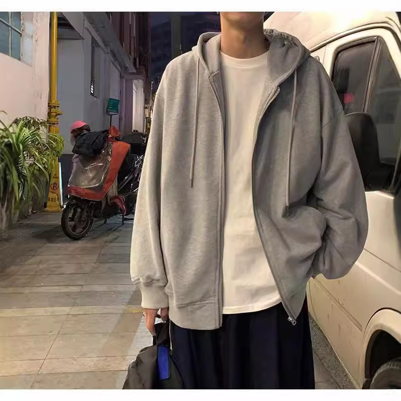 帽子付きの男性の純色のカジュアルでゆったりしたカーディガンのジッパーコート