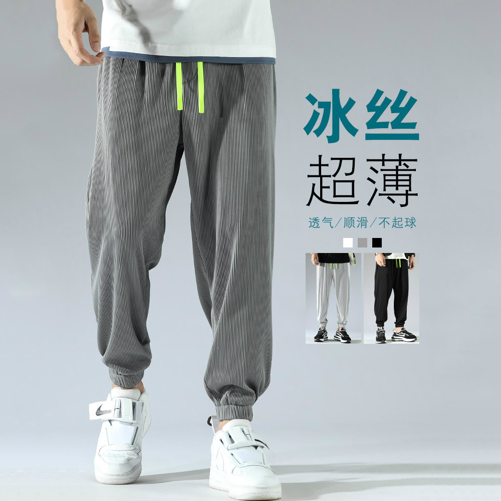氷糸ズボン男夏の薄いタイプのゆったりしたスポーツハーレムズボン夏のシルク滑り速乾男性カジュアルズボン