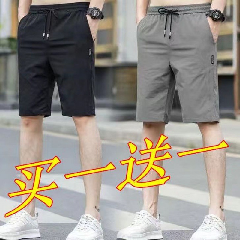 男三分運動半ズボン夏ビーチランニング氷糸速乾ゆるいフィットネスカジュアルパンツポケットファスナー