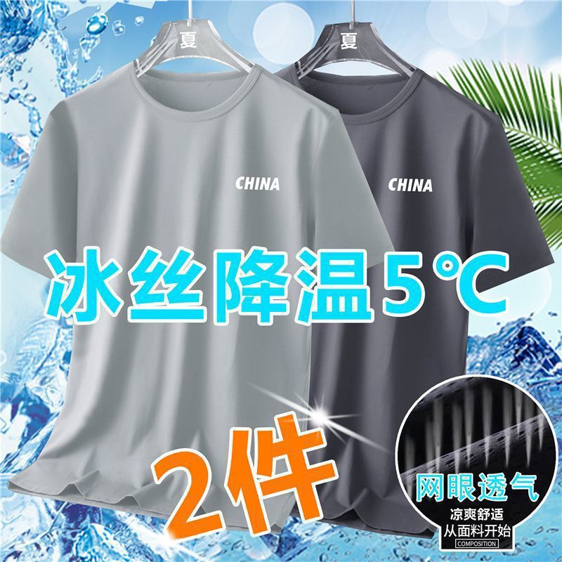 氷糸速乾半袖tシャツ男性夏の薄い通気レジャースポーツ修身丸襟シャツメッシュプリント