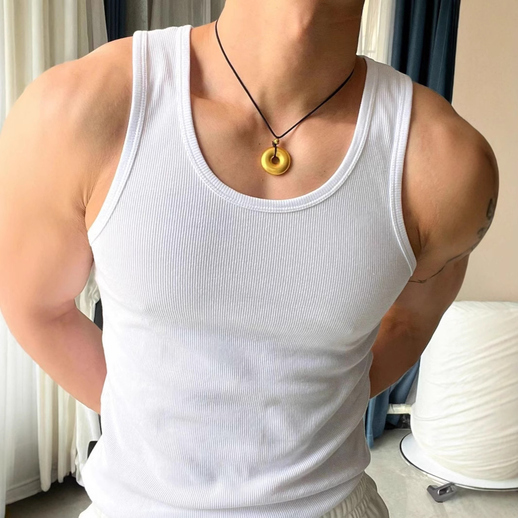男性ベストフィットネス弾力ベスト太ねじベストアメリカ吸汗運動ベスト純色修身金男性
